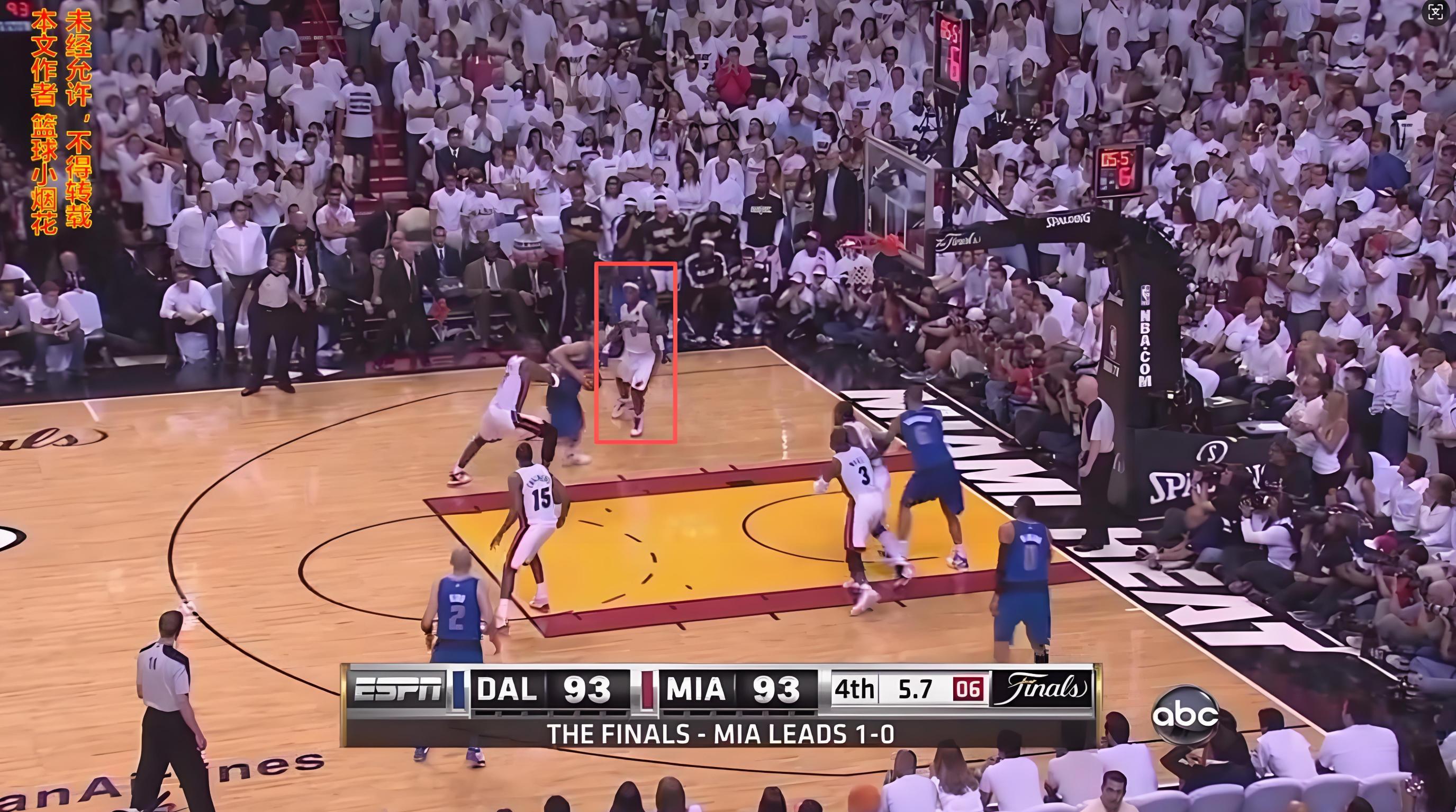 当然,如果考究一点,这只是一个准绝杀,其实最后热火还剩下3.6秒钟的时间,发底线球,正常操作就是接球之后嗷嗷往前面跑,管他有没有机会扔一个,毕竟分差只有2分,不是3分,越靠近篮筐,进球的概率就越大,但詹姆斯接球之后不紧不慢地运了两次球,然后剩一秒钟,把球以一个无比标准的传球姿势,扔给了虽然刚刚发完球,但反而还跑在詹姆斯前面的韦德,韦德骑马射箭,强扔不中,彼时就此盖棺定论。